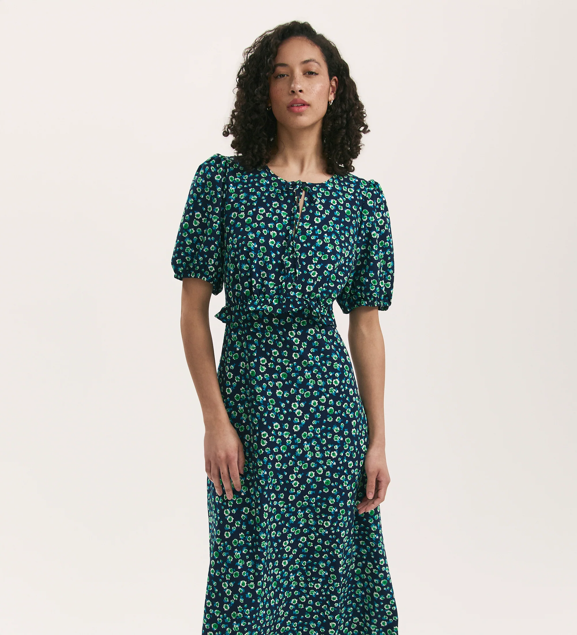 Anika Navy Ditsy Crepe Midi Tea Dress