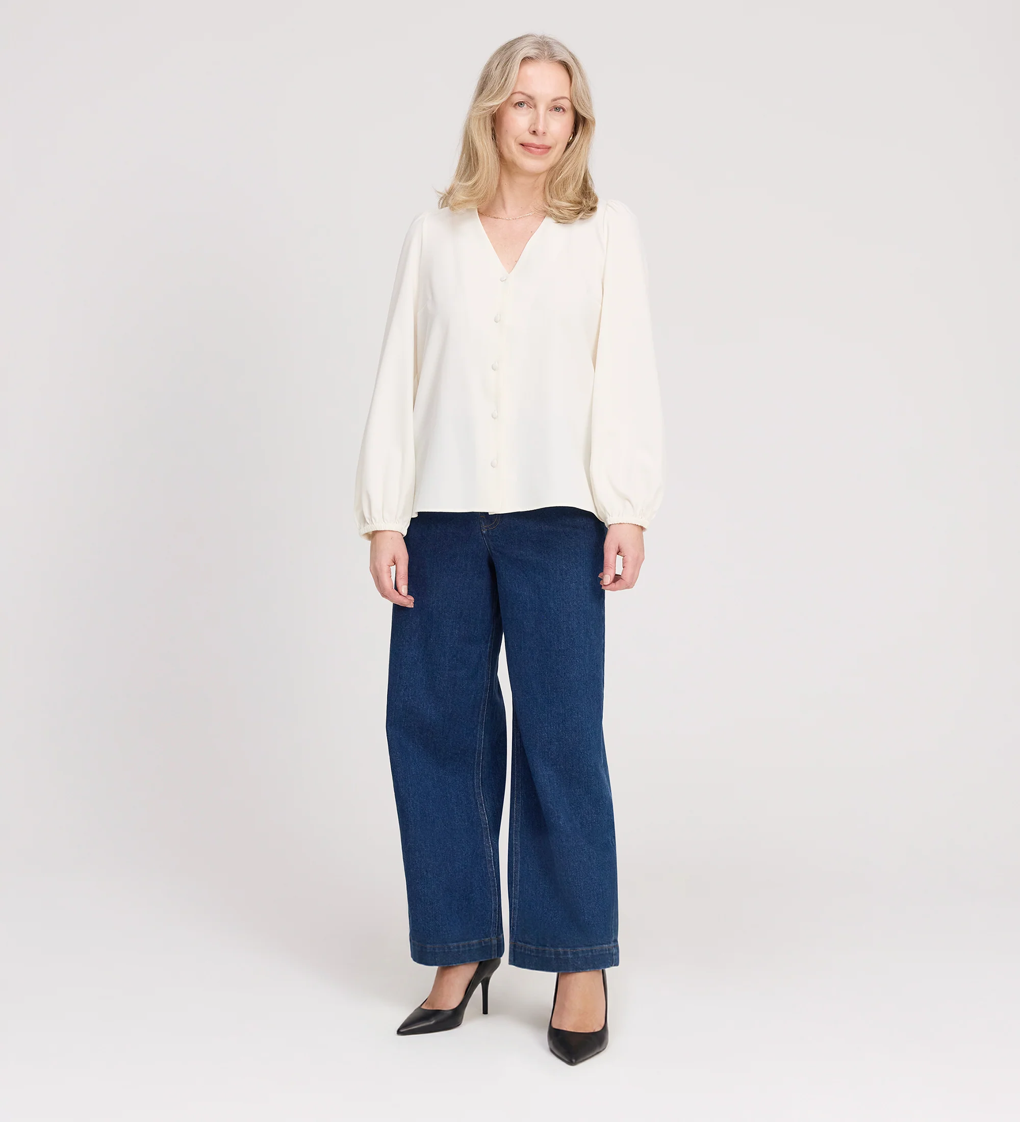 The Elvora Top is a straightforward, versatile piece designed for comfort and ease. Cut in a relaxed fit, it features a classic V-neckline and a clean button through front that makes it easy to style for different occasions. The full length sleeves are finished with elasticated cuffs, allowing you to wear them at full length or pushed back for a more casual look. It is a dependable staple that transitions effortlessly from the workweek to the weekend.