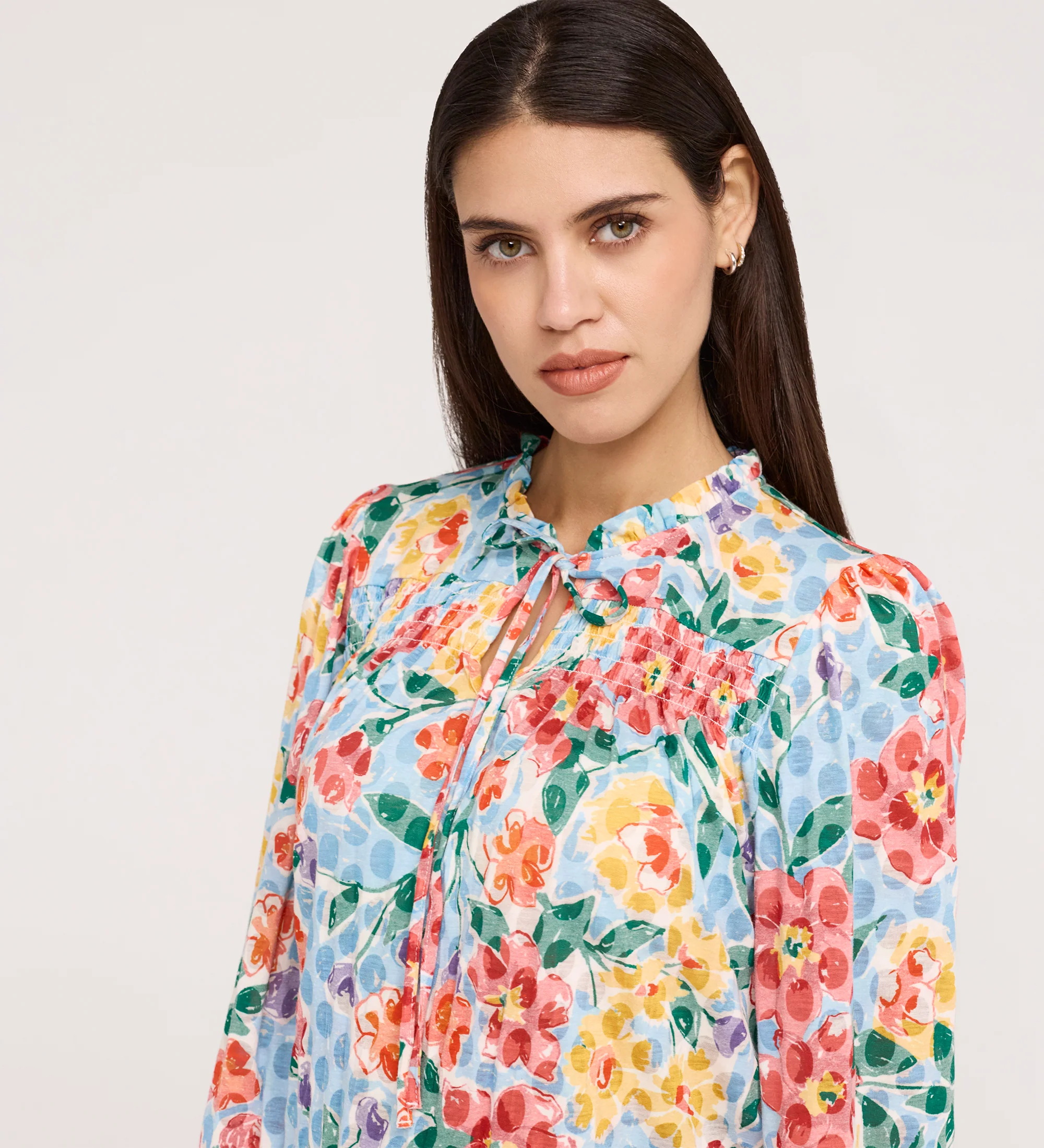 The Lizzie Blouse is the embodiment of effortless, feminine charm. This long sleeve blouse is defined by a delicate frill stand collar and a versatile tie neck that can be worn open or closed to suit your style. It is detailed with intricate shirring at the yoke and features voluminous full length blouson sleeves finished with elasticated cuffs. Cut in a comfortable relaxed fit, this printed blouse is a dependable hero piece that pairs perfectly with high waisted denim for a polished yet easy look.