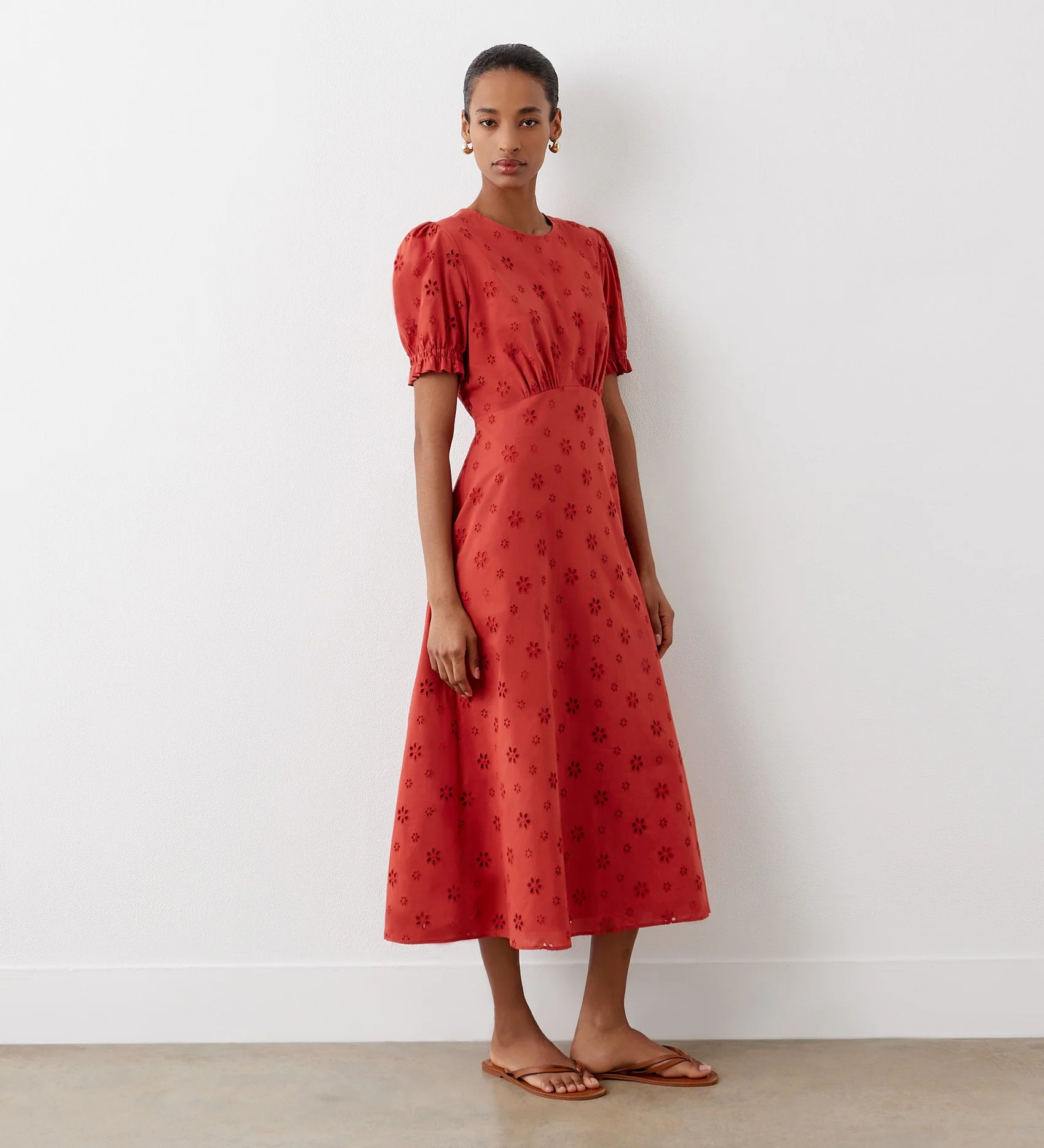 Mela Rust Broderie Anglaise Cotton Midi Dress