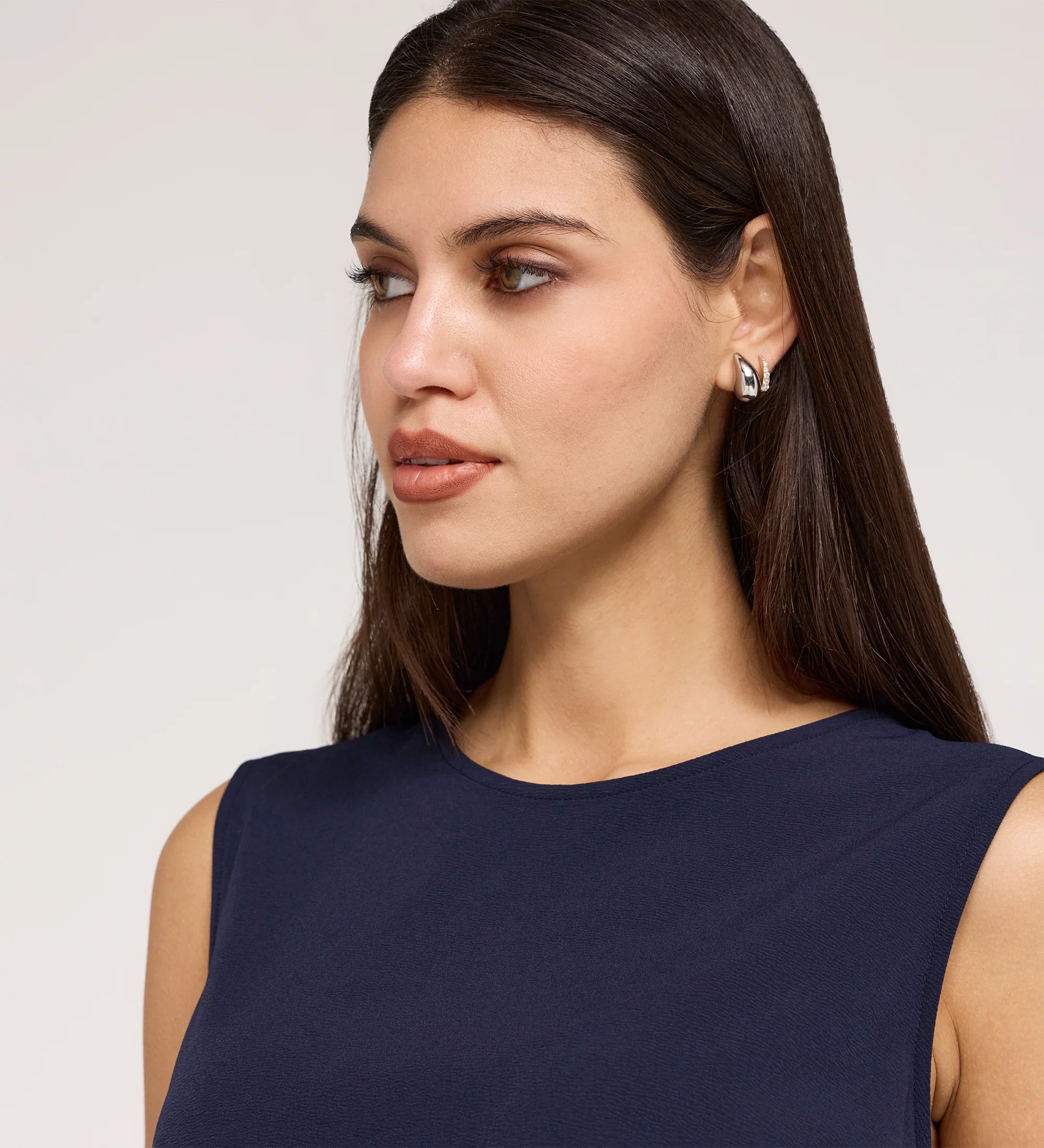 The Vallie Top is a foundation piece that offers a sharp, clean finish to any outfit. Cut in a classic shell top style from textured poly crinkle fabrication, it features a timeless round neckline and a relaxed fit for effortless all day wear. The back is detailed with a simple keyhole and button fastening, providing a polished look from every angle. Whether tucked into a high waisted trouser or worn loose over denim, the Vallie is a dependable hero that simplifies daily dressing.